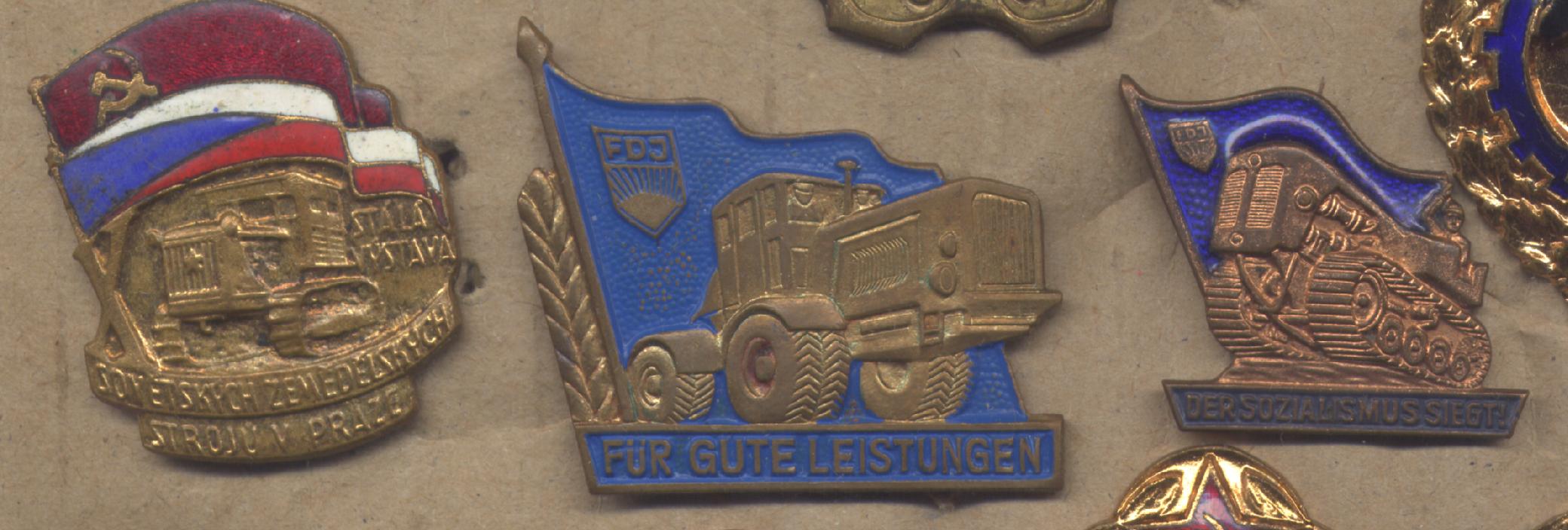 Еще. Два варианта трактороэкспорта : серебренный и в позолоте.Интересно , знаки шли как памятные(дарственные) , или все таки служебные ???Да и производитель сих знаков интересовал бы.Стилистика исполнения(в частности крепление) не советская.