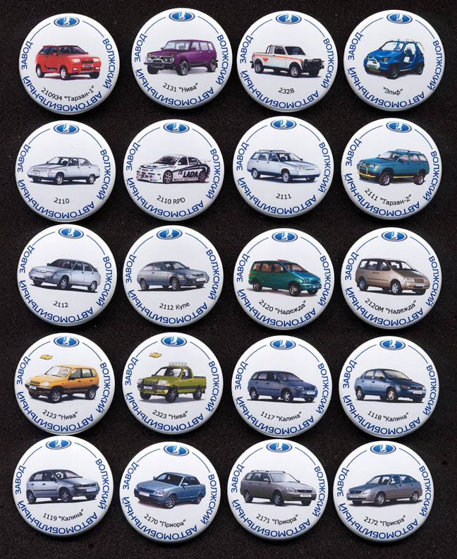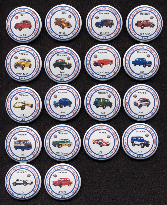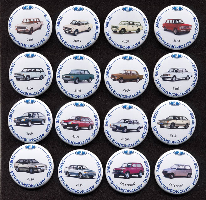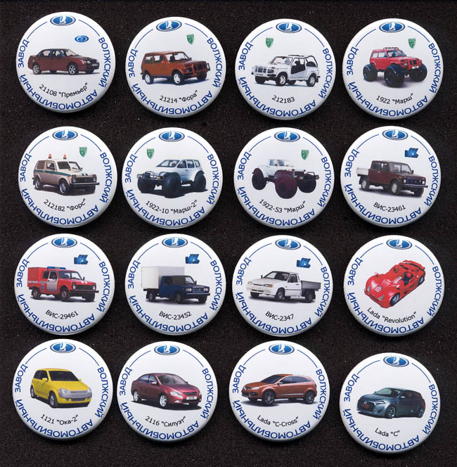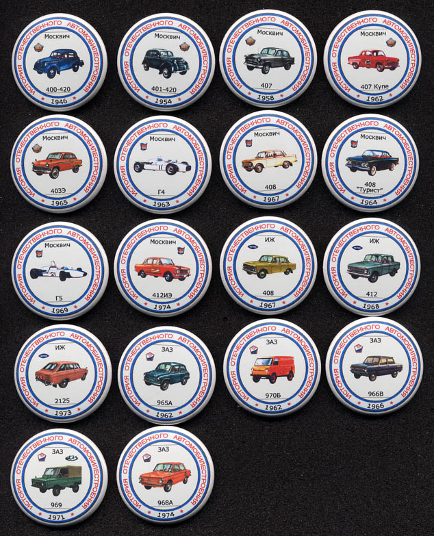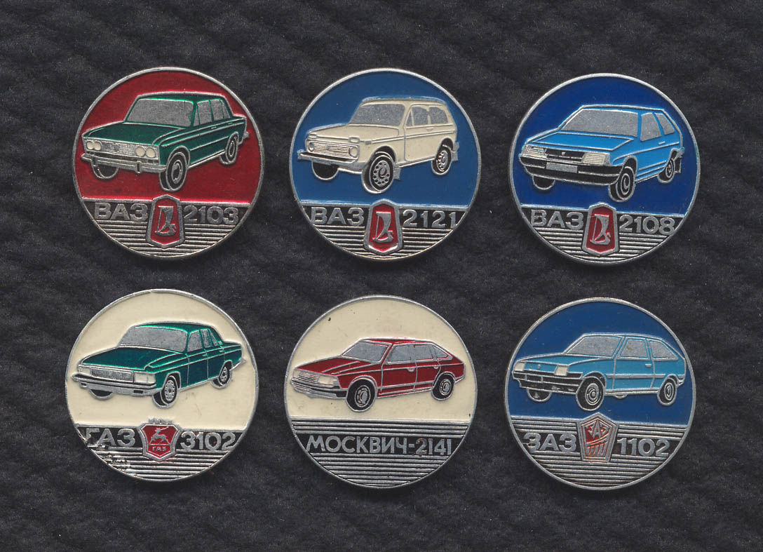 III. Серии значков, посвященные автомобилям определенного завода (ГАЗ, ВАЗ, АЗЛК и др.);