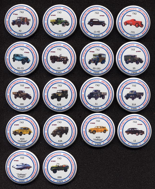 Серия "Автомобили Горьковского автозавода" из 17 значков