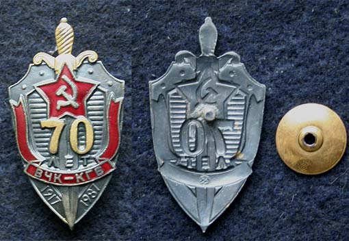 Аналогичные знаки 50-60-70 лет ВЧК-КГБ выпускались на заводе СЭНС в г. Минске.