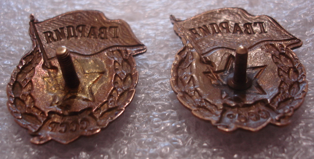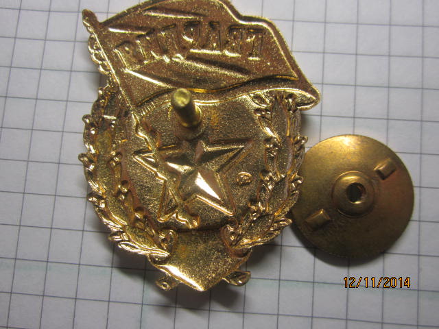 Если я не ошибаюсь, то официальные знаки МО - без СССР и без веток. Фото есть в теме.REGION 76 писал(а) :Знаки представленные без СССР.являются современными знаками МО РФ,остальные с орлом и.т.д. были переходными,этот знак утверждён и является официальным (смотрите последний парад),вообще то по этому вопросу много было обсуждений и информации,сейчас в продаже бывает крайне редко.С Ув.