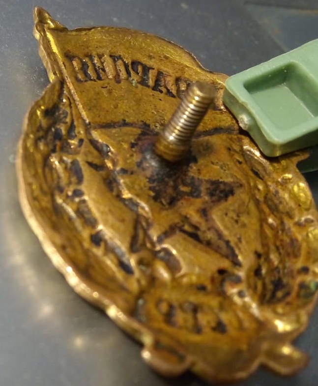 Может кто то подскажет, что ещё использовалось по нанесению на знак имитируя золото? Уж больно быстро оно (позолота) стерлась со знака. Только в углублениях знака и просматривается.