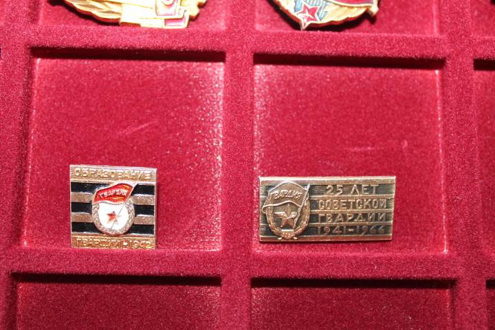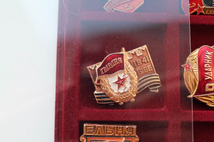 Судя по фону это часть коллекции картинок из сети., или я ошибаюсь? В любом случае хочу добавить фото реверса двух знаков юбилея Гвардии 60 лет. Один знак из жёлтой латуни, другой из красной (томпака). Когда они рядом - разница заметна.