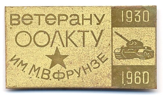 Точнее говоря, судя по сокращению - Орловское ордена Ленина Краснознаменное танковое училище имени М.В.ФрунзеAlex_057 писал(а) :Ветерану Орловского Краснознаменного бронетанкового училища имени М.В. Фрунзе, 1930-1960 гг.