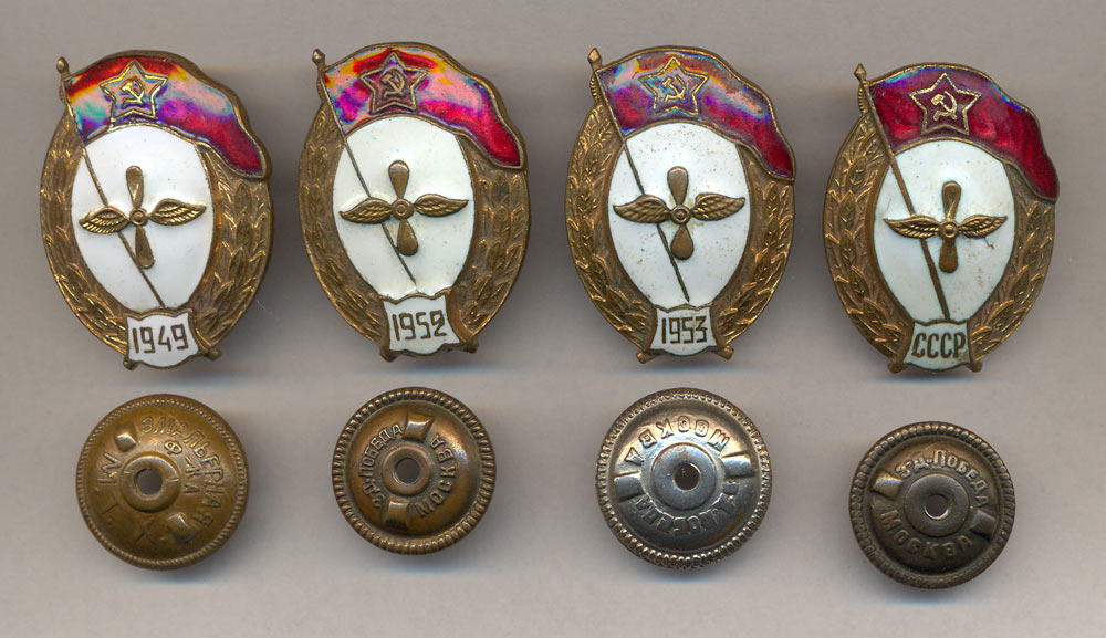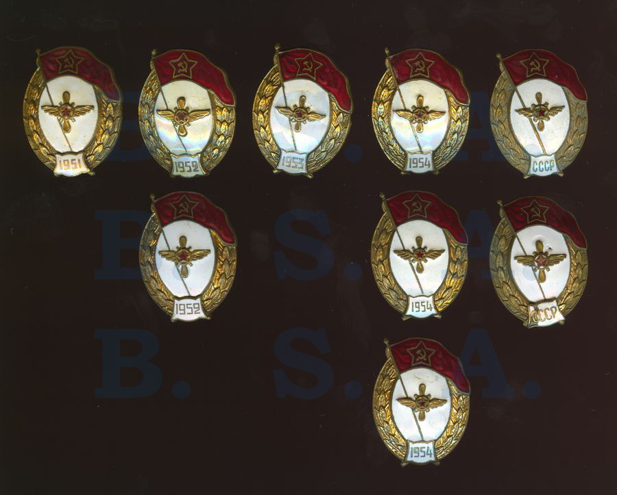 - знаки, где шильдике помещена аббревиатура «СССР» получили выпускники 1955-1957 гг;