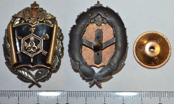 Нагрудный знак по принадлежности к Военному университету радиационной, химической и биологической защиты. Учреждены приказом главнокомандующего Сухопутными войсками от 1 апреля 2005 г. № 41