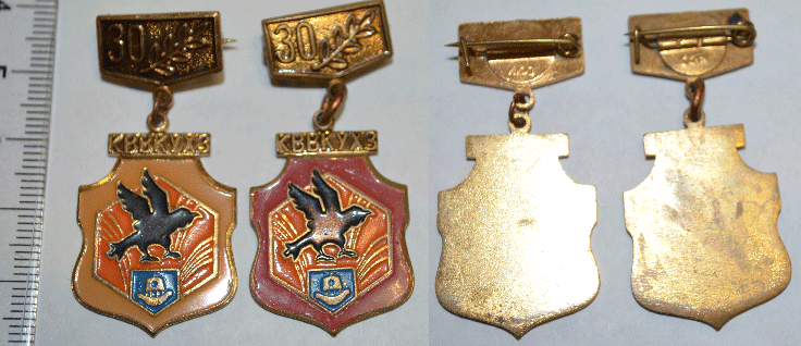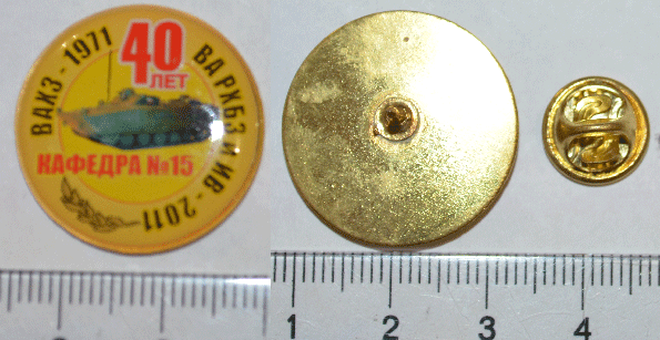 Этот знак к 25-летию училища, на родной колодке 1966-1991. За показ знаков спасибо, один не видел точно.Слушак писал(а) :Юбилейный знак. Костромское высшее военное командное училище химической защиты. 35 лет со дня основания. Колодка не родная.