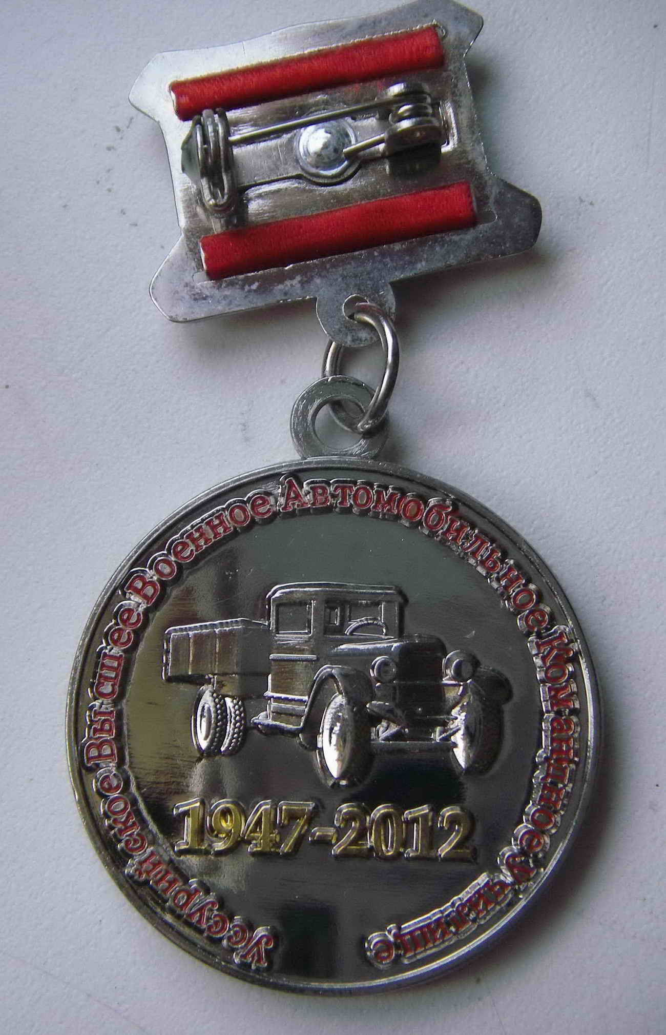 Вариант 1. Знак на прямоугольной колодке, обтянутой лентой цветов государственного флага РФ. Поверх ленты наложена золотая звезда. Сзади на колодке имеется винт.
