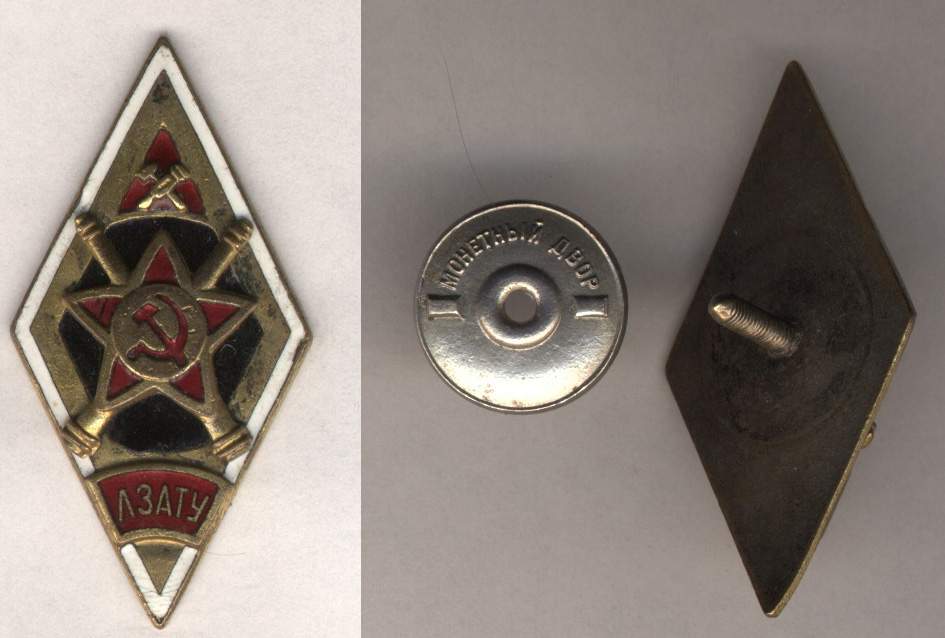 Искал знак этого училища, но нашел только ромб ЛЗАТУ. Похоже, что это он и есть, но я еще немного сомневаюсь. Дело в том, что дед всегда говорил, что закончил ЛАТУЗА, а на ромбе, который я нашел написано ЛЗАТУ.
