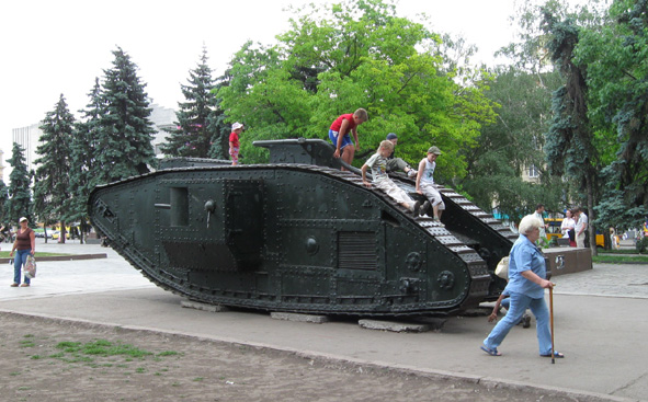 Этот снимок сделан во дворе Харьков с кого исторического музея. Танк английских интервентов, захваченный частями Красной Армии на Украине в годы гражданской войны.