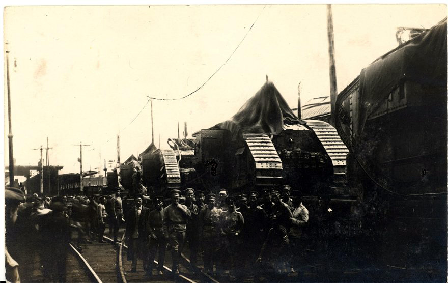 В историческом музее хранится памятное фото 1919 года. На нем у трофейного танка запечатлены бойцы, командиры и политработники автоброневого дивизиона перед выходом на первомайский парад.