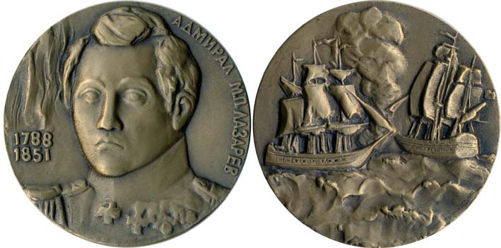 Медаль "Адмирал М. П. Лазарев". Томпак. СССР, 1982 год. Диаметр 6 см. Автор М.А.Шмаков. Тираж 850 экз. № 1396.
