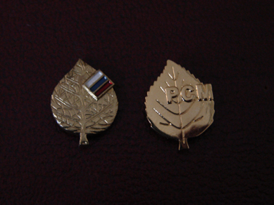 Правопреемником ВЛКСМ в начале 90-х стал Российский Союз Молодежи. Членским значком был утвержден березовый листок с российским триколором... Выпускался сначала на булавке, затем на цанговом зажиме...