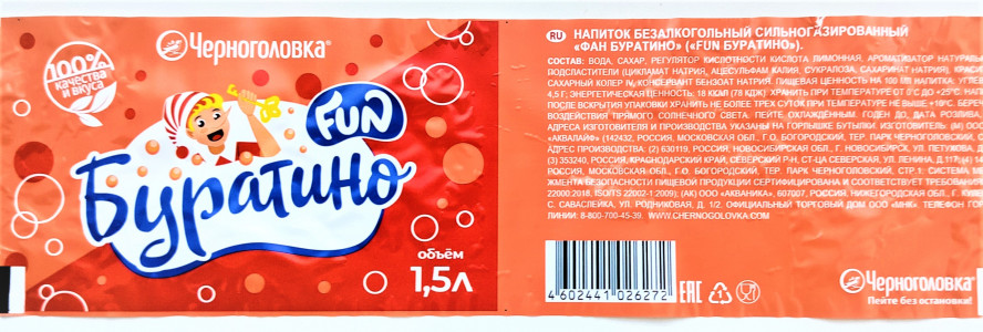 Напій безалкогольний соковмісний сильногазований "БУРАТІНО".