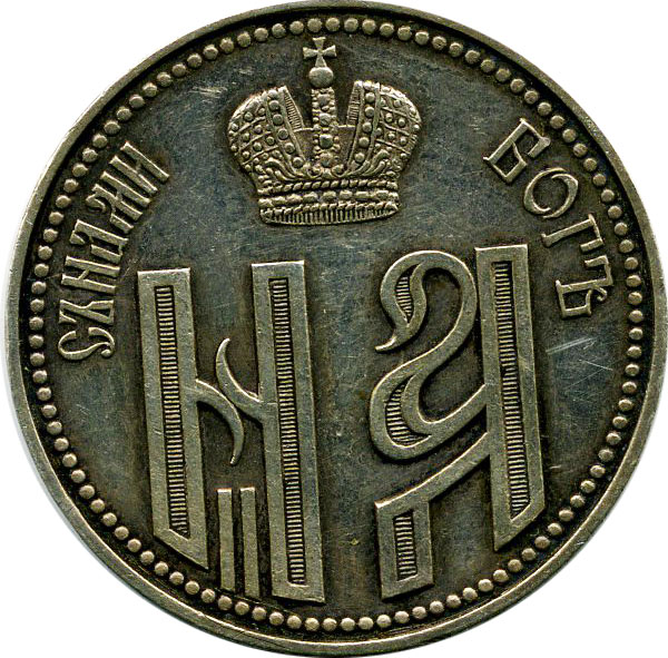 Такой же жетон выставлялся выше,но его неудобно рассматривать из за большого размера.Жетон изготавливался в Германии ,что повлекло к некоторым ошибкам(см. букву
