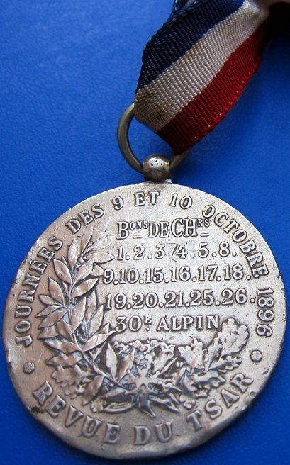 А по последней медальке,-это номера частей ,которые царь осматривал в эти дни.Кстати,о визите прямо надо мной в книжных завалах стоит книжечка на визит царя в Тулон.Тоже поищу