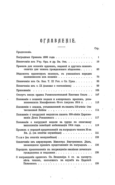 15 глава "Награды Романовского юбилея"-история наград юбилея 300 летия царствования дома Романовых (медаль, крест для священнослужителей, наследственный знак, зо св. Ольги, зо за труды по сельскому хозяйству)