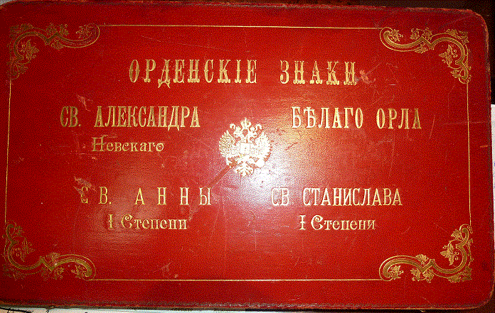 Это коробка к знакам "младших орденов", которые выдавались Андреевскому кавалеру из царской семьи, либо высокопоставленным иностранцам.miniature писал(а) :А можно её показать открытой, раньше не видел коробку на 4 ордена сразу.