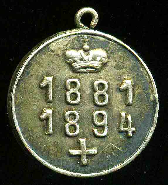 В память царствования Александра 3, серебро, диаметр 15,7 мм, вес 2,7 г