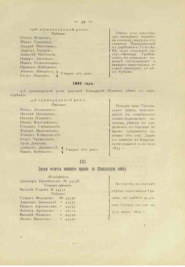 13. Антипов Иван, Баклановской станицы, за набег на Инкоу 4-й степени номер 125845.