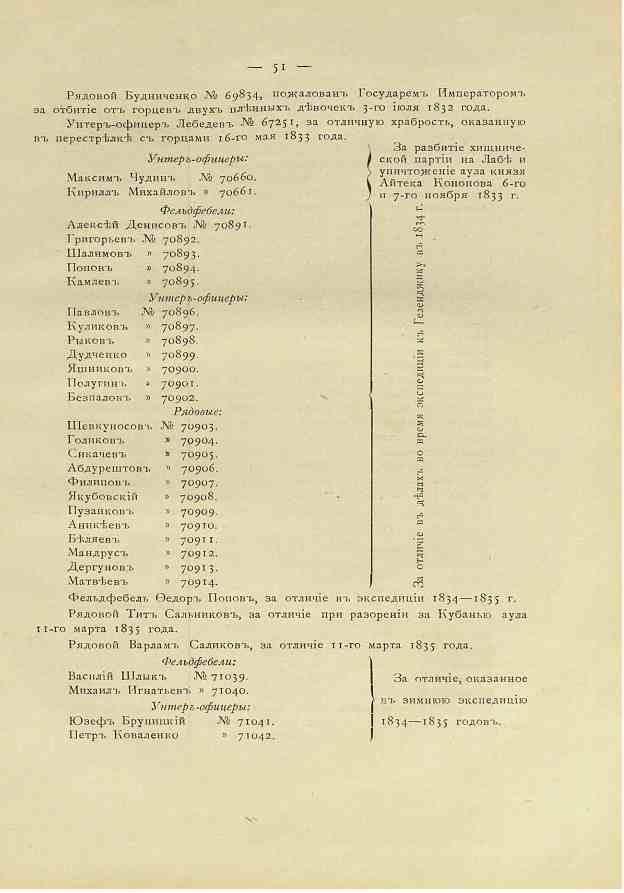 51. Егоров Федор, Аксайской станицы, за набег на Инкоу 4-й степени номер 184410.