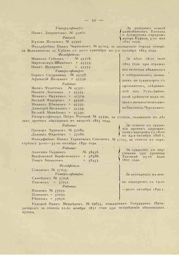50. Приходьков Александр, Гниловской станицы, за набег на Инкоу 4-й степени номер 184412.