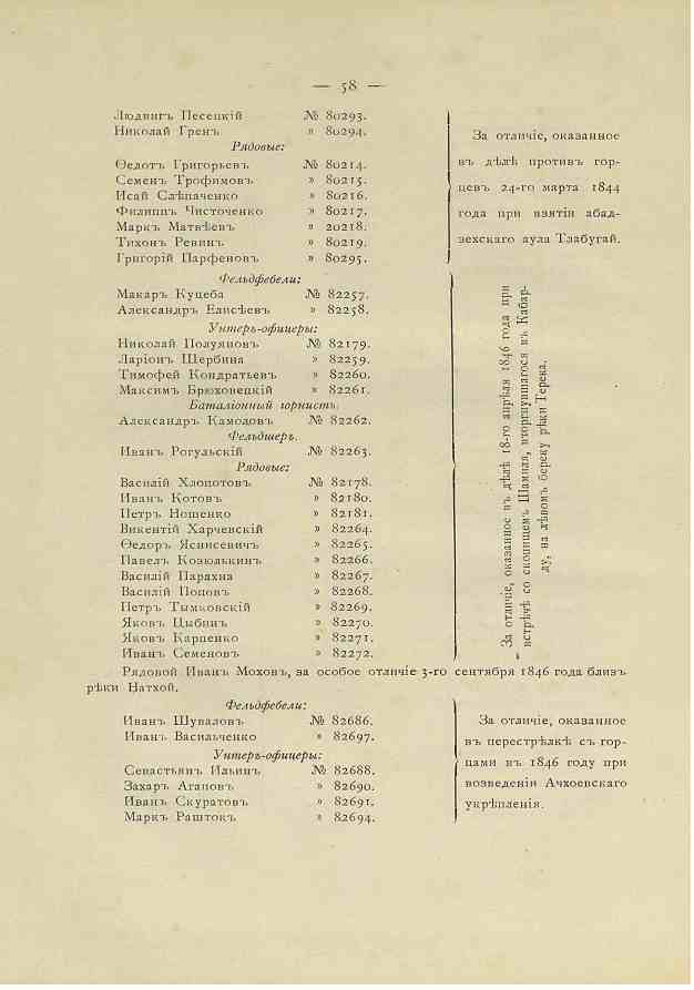 46. Ежов Григорий, Ольгинской станицы, за набег на Инкоу 4-й степени номер 184406.
