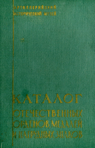 "Каталог отечественных орденов, медалей и наградных знаков" (каталог артиллерийского исторического музея), А.А. Бумагин, Е.Н. Шевелёва, из-во АИМ, Ленинград, 1962, 447 с. (ч/б+цв. вкладка)