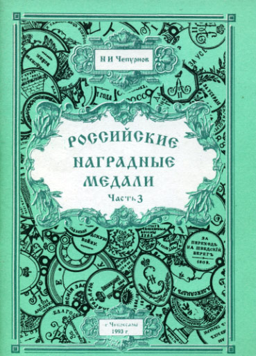 "Российские наградные медали. Ч.3" (медали 19 века 1825-1855 гг.) , Н.И. Чепурнов, из-во "Чувашия", Чебоксары, 1993 г., 145-218 с., тир. 10 т. (ч/б)