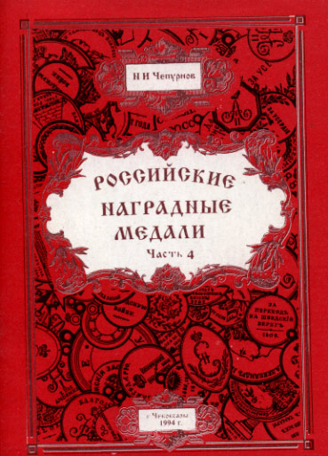 "Российские наградные медали. Ч.4" (медали 19 века 1855-1881 гг.) , Н.И. Чепурнов, из-во "ГРАФО", Чебоксары, 1994 г., 219-320 с., тир. 5 т. (ч/б)