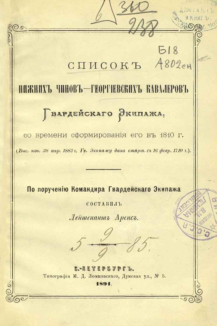 Список нижних чинов - георгиевских кавалеров Гвардейского экипажа, со времени сформирования его
