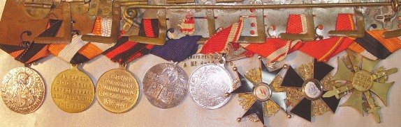 Очень интересное фото, если оно действительно 1957г, сколько лет этому человеку 75 или более. Медаль 25 лет ЦПШ учреждена в 1909г. право её получить могли лица проработавшие в них не менее 10лет, если предположить, что он 1882г. рождения т.е. 75лет, когда он успел проработать 10лет, он же еще учился, наверное, ордена так просто не давали или он их получал в эммиграции, да еще с черной эмалью. Интересно и непонятно.
