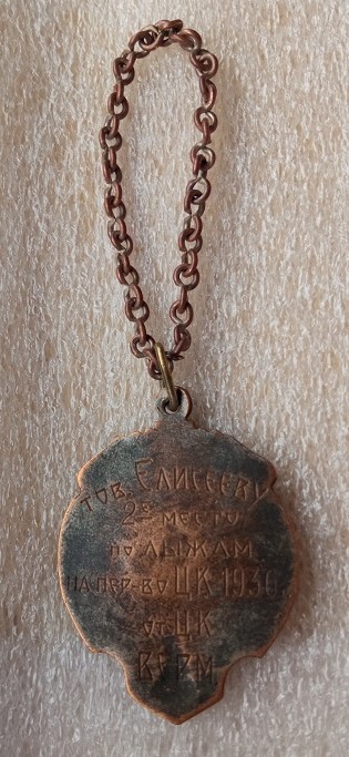 Ранее мной был представлен наградной жетон за 2 место (Динамо) лыжного пробега Ярославль - Мосвка 1938 г. на цепях.