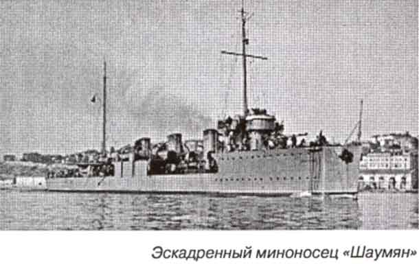 И последним объектом был эскадренный миноносец "Шаумян". Корабль спущен на воду 23.10.1917 г под названием "Левкас" и впоследствие, был переименован. С декабря 1925 г в составе Морских сил Чёрного моря. 3 апреля 1942 г в акватории мыса Тонкий (в районе Геленджика) выскочил на камни, а затем был практически разрушен немецкой авиацией.