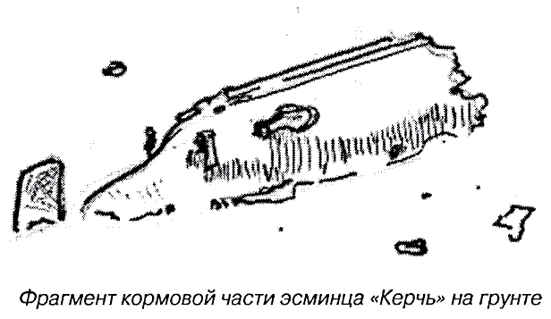 Первый подводный объект - эскадренный миноносец "КЕРЧЬ", тот самый корабль, который по распоряжению Совнаркома, отправил на дно целую эскадру. Корабль спущен с Николавского стапеля накануне октябрьских событий 17-го и уже в декабре вошёл в состав Черноморского флота. Но, в 1918 г WW 1 уже вплотную подошла к Чёрному морю и 25 апреля, Германское командование предъявило Советскому правительству ультиматум о сдаче Черноморского флота. 29 апреля 1918 г ЭМ "Керчь", в составе отряда кораблей, во избежание захвата Кайзеровскими войсками, ушёл из Севастополя в Новороссийск. :diver: