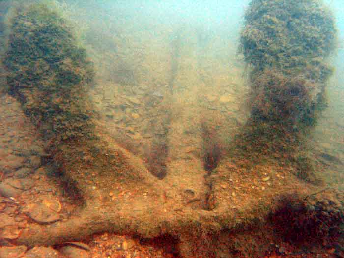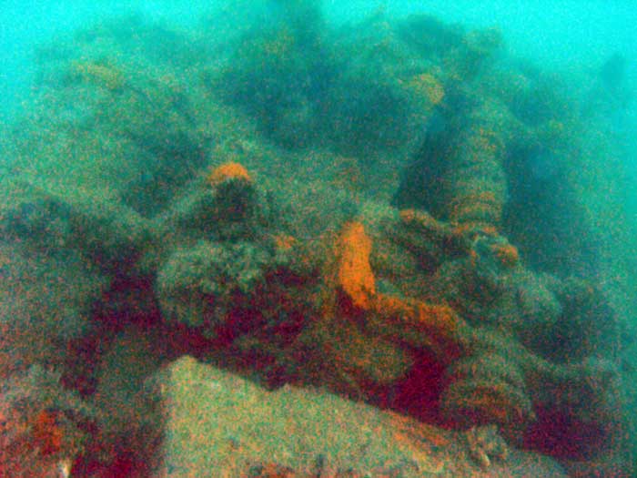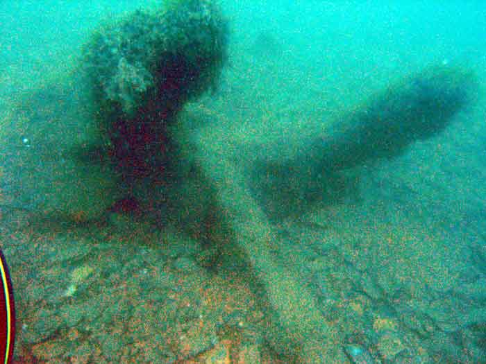 Останки основательно разрушенного судна, разбросаны в радиусе 300 м.на глубине от 5 до 20 м. Обнаружен якорь и медные трубы.Трудно понять где нос, где корма, огромное количество разных медных труб, лежит якорь. В одном месте сохранился кнехт. Останки судна густо усеяны мидиями и рапанами. Не верится, что это был большой и красивый корабль.:diver: