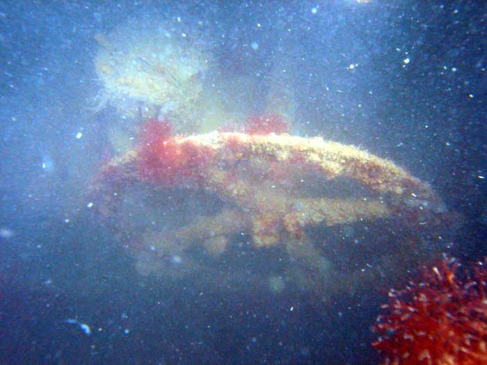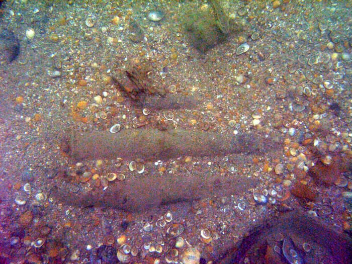 На глубине 12 м на грунте обнаружены куски обшивки, шпангоуты и, как всегда, боеприпасы. Это всё, что осталось от эсминца. :diver: