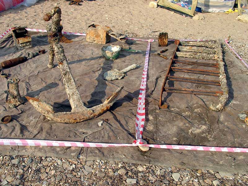 Поисковики клуба не смогли устоять перед искушением поднять с небольшой глубины якоря и останки некогда грозных боеприпасов. :diver: