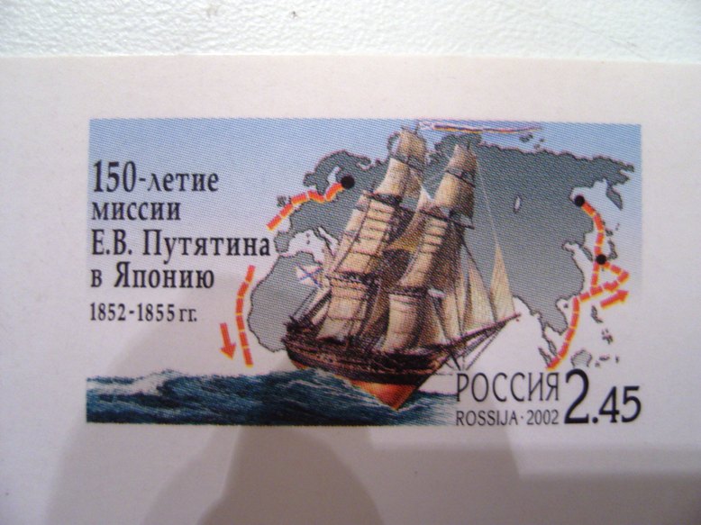 На втором : адмирал Е.В. Путятин и шхуна «Хеда» у берегов Камчатки 160 лет назад (на русском и японском языках).