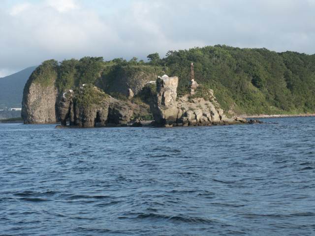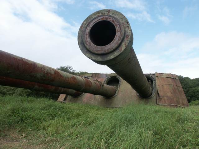 На этом острове, кстати, по сей день сохранилась другая реликвия - береговая батарея им.К.Ворошилова, введённая в строй в 1933 г, орудийные башни которой,