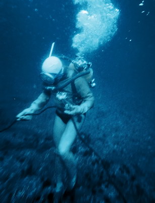 ...Сказанное, было достаточно убедительно и в силу хорошо известного исторического факта затопления фрегата. Не могли же его топить на прибрежном мелководье. Промер глубины в центре бухты показал 22 метра. На дне во все стороны расстилалась ровная безжизненная илистая пустыня, в мгновение взрывающаяся густыми клубами мути и полностью закрывая обзор, стоило лишь потревожить дно ластами. Поиски продолжались пару дней, но увы...