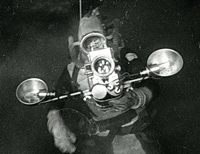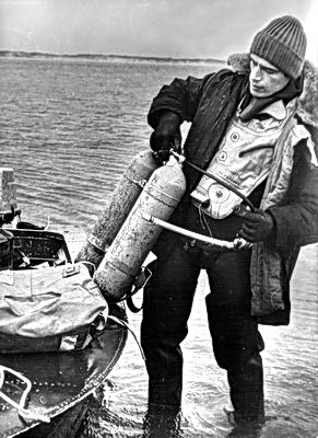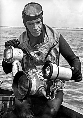 Из снаряжения, кроме акваланга, имелся тяжеленный капризный фотобокс с массой рычагов и шестерёнок, неизменно пропускавший тонкие струйки воды, несмотря на многократные попытки герметизации. :diver: