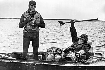 Утром инженер экспедиции разбудил меня и с нервным смехом предложил посмотеть судно, выделенное для водолазных работ. Спустившись к причалу и взглянув на "лодочку", я обомлел. У бонов отшвартовался огромный торпедолов,- что-то среднее, между минным тральщиком и сторожевым кораблём. Этот корабль предназначен для выискивания и подъёма из воды торпед, применяющихся при учебных стрельбах. После просьбы поменять эту махину на небольшое плавсредство, получили и шлюпку, и матроса в придачу.