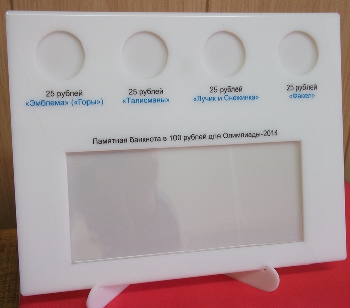 Монеты размещаются в ячейки, изготовленные в прочном картоне по размеру монет, между двумя пластинами прозрачного пластика, свойства которого препятствуют окислению монет.