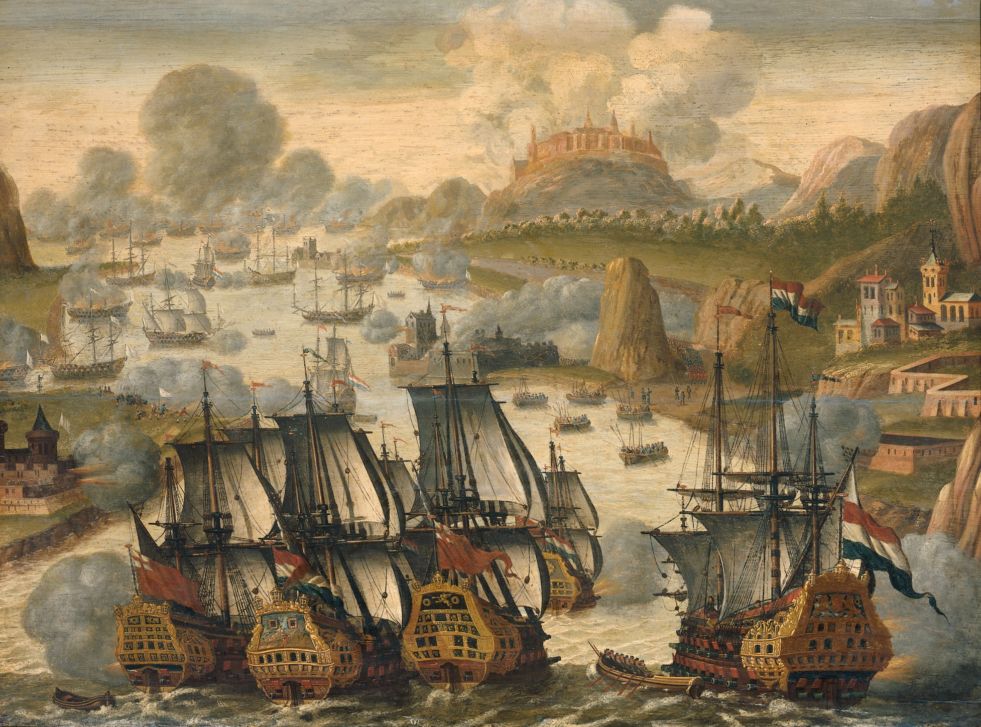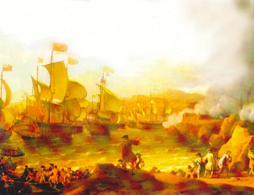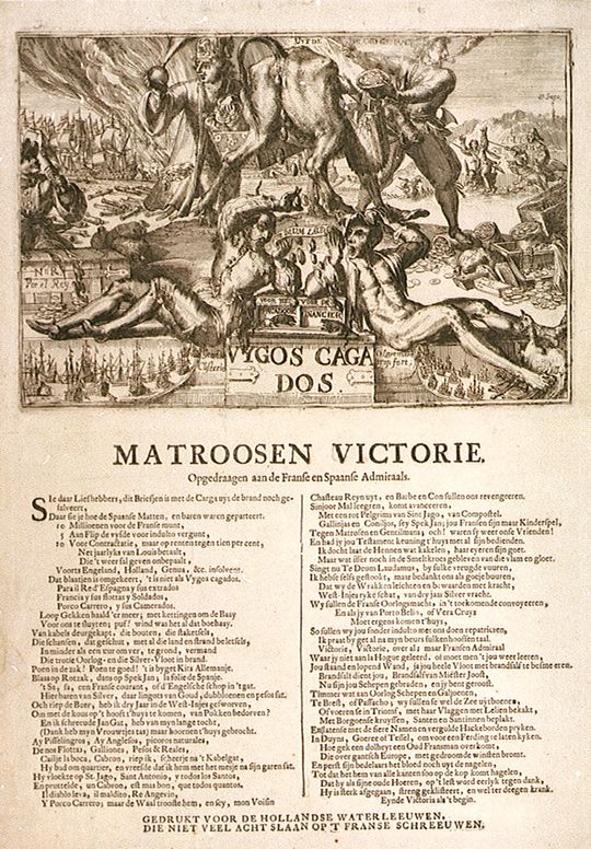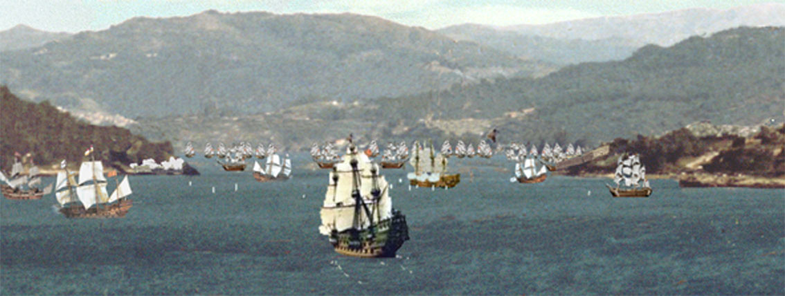 В июле 1738 г в залив Виго прибыла судоподъёмная команда, возглавляемая Александром Губертом. После длительных замеров глубин и прощупывания бухты, было обнаружено несколько кораблей, лежащих на сравнительно небольших глубинах, причём один во время отлива оставался на 6-метровой глубине. На этом судне команда и остановила свой выбор. Почти 4 года А.Губерт раз за разом, пытался сдвинуть корабль с места и, наконец, в феврале 1742 г, подведя к судну толстенные пеньковые канаты и деревянные понтоны, ему удалось подтащить судно к берегу. Учитывая технические возможности начала XVIII в., это была не просто удача, а серьёзный прорыв в судоподъёмных операциях.