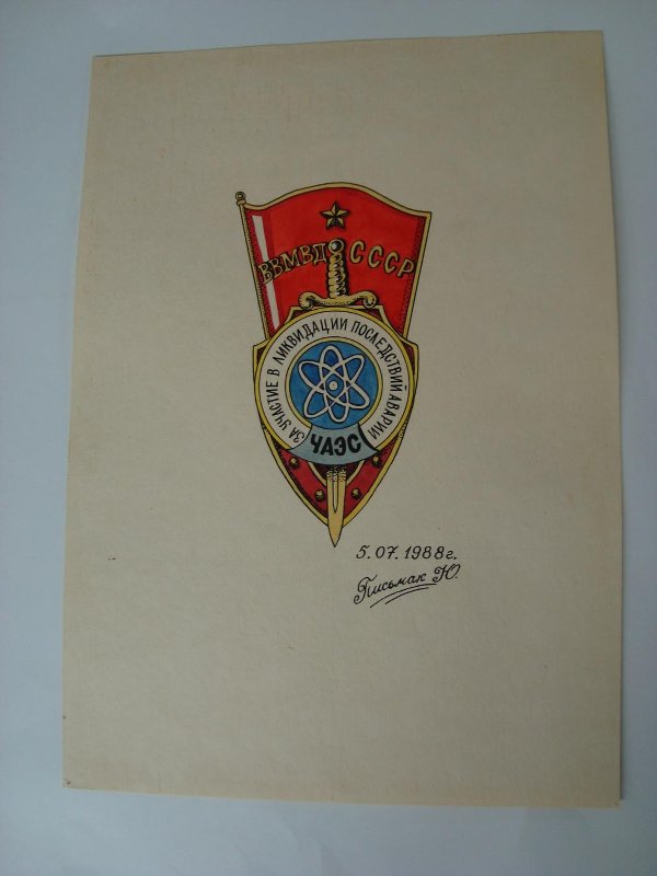 Эскиз нагрудного знака «МВД СССР. За участие в ликвидации последствий аварии ЧАЭС».