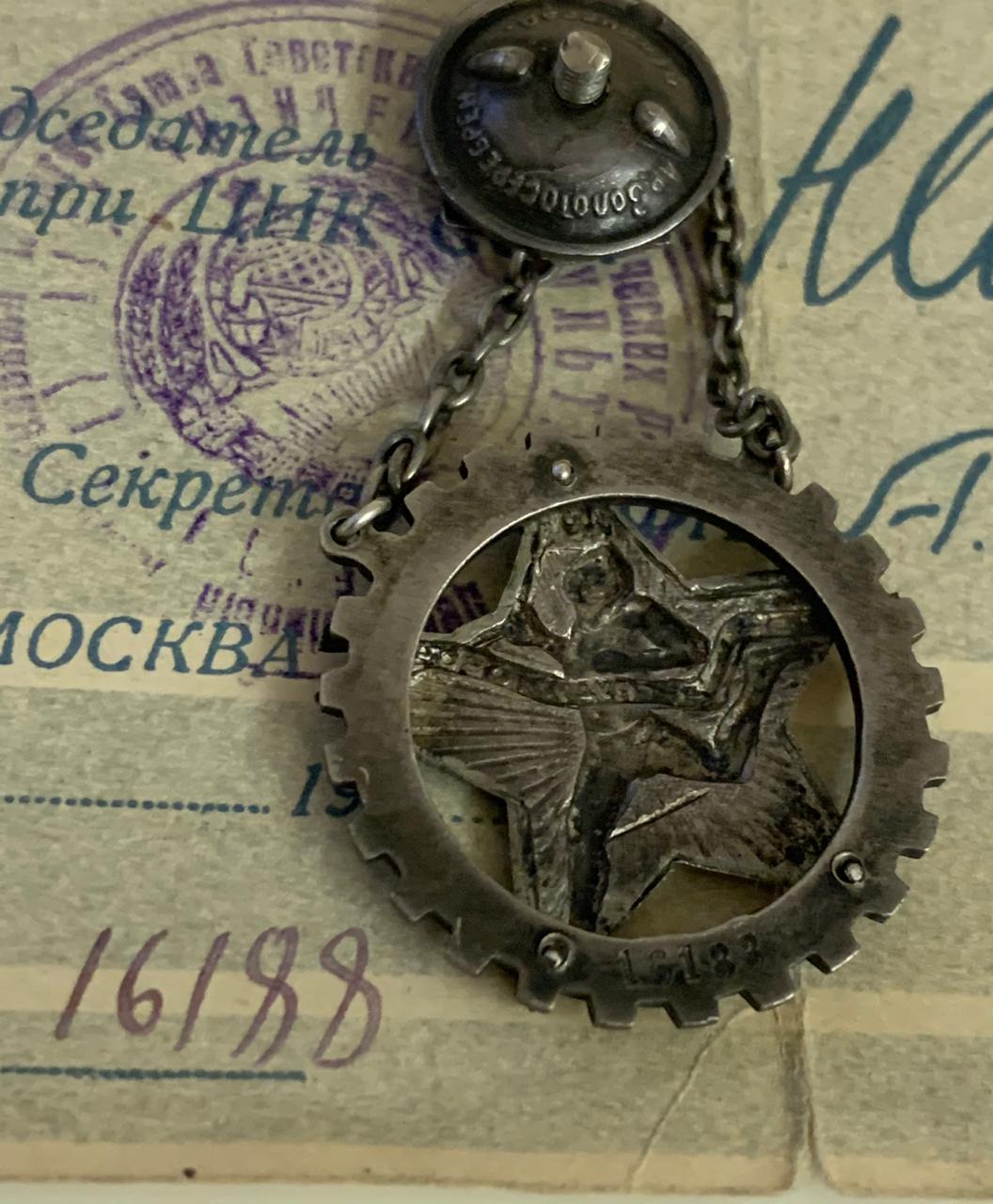 Знак переходной. Посмотрите здесь, на станице 6, ставил свой знак № 1004442 с аналогичным вопросом. Решили или ТрудГравер или Золотосеребрение. Большинство за ТрудГравер. Кстати гаечка трудграверовская подходит. Есть такой же с № 997151 приобретал с гаечкой трудгравера.