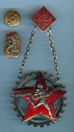 "Нет"-что не под флагом и эгидой Комсомола существовало общество, поэтому и не видим на знаках комсомольских опознавательных символов. Это ведь оборонно-спортивное добровольное общество, которое было нацелено на все слои молодежи (учащейся и работающейся) и граждан более старшего возраста.