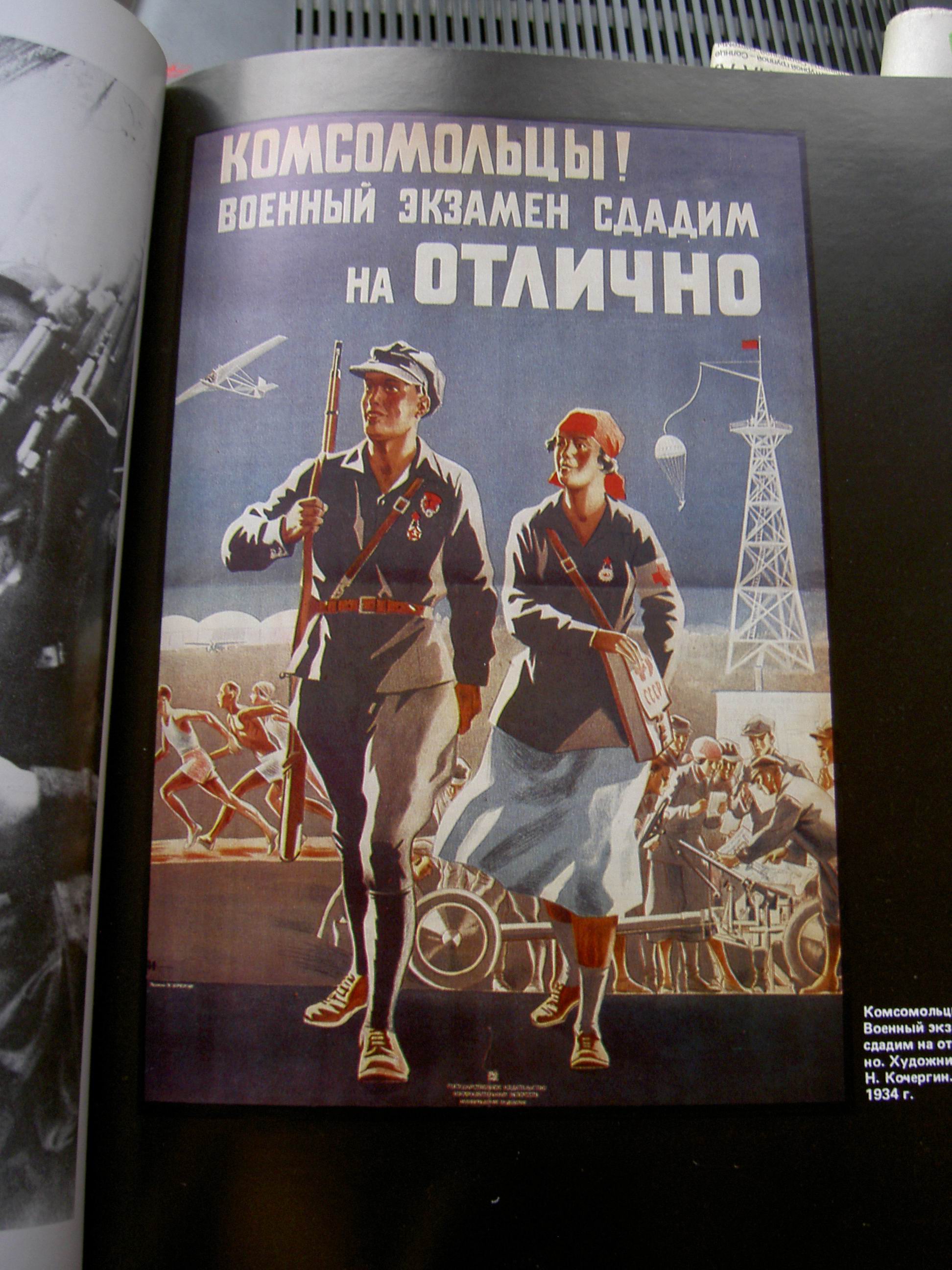 На плакате "Комсомольцы! Военный экзамен сдадим на отлично"