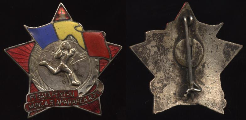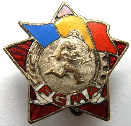 Надпись на знаке на русский переводится как - Будь готов к труду и обороне республики Румыния. Аббревиатурой, на значках БГТО, эта фраза обозначалась как FGMA.